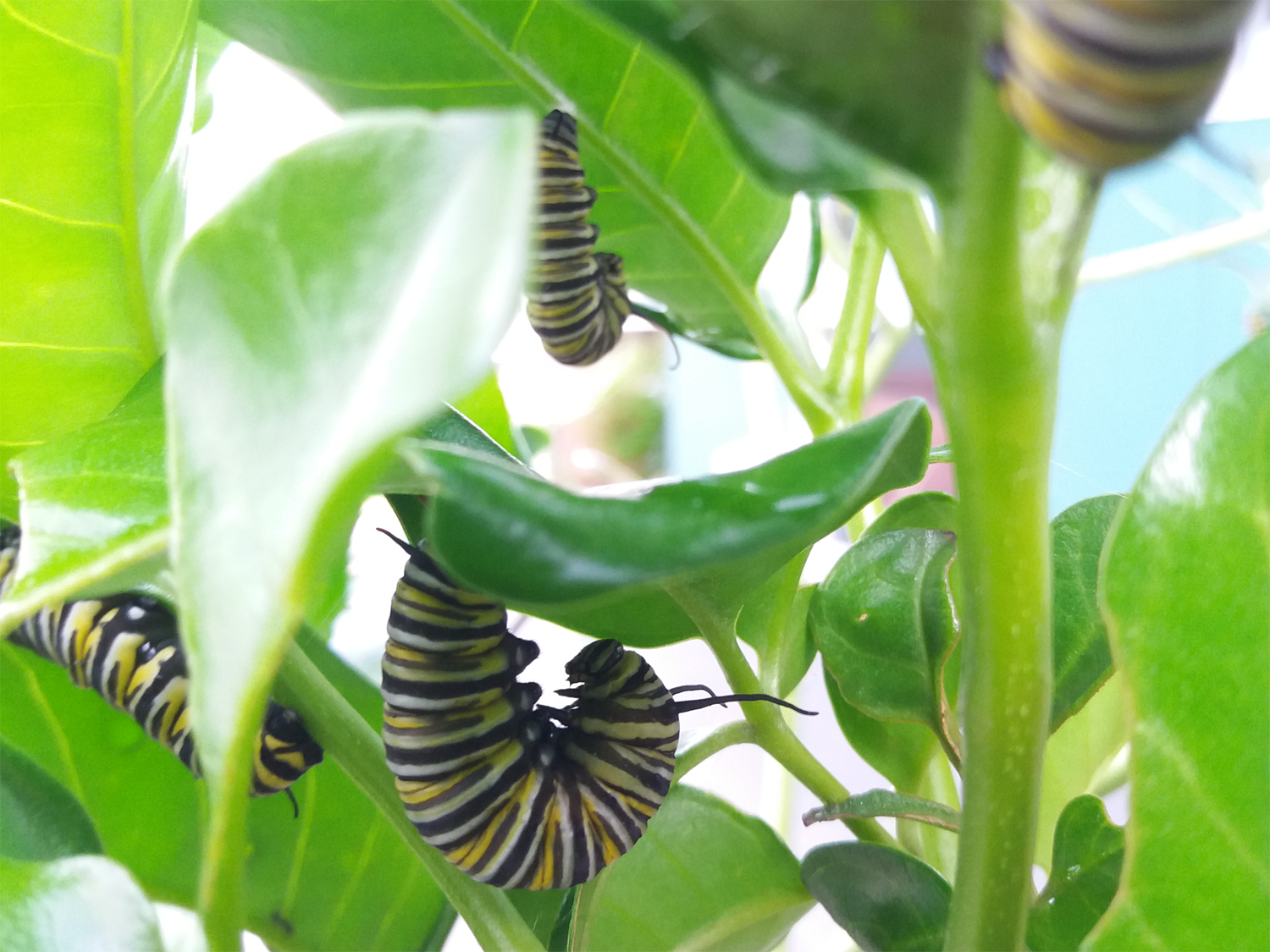 Three base designs consist of an abstract wing repeat pattern, a butterfly pair feeding on swan plants in lightened and subdued analog hues, and a single butterfly silhouette.